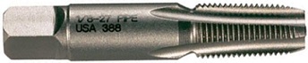 Pipe sizes. For pipe fittings. Made of tough, carbon alloy tool steel that resists rust and tarnish. Size marked on tap.